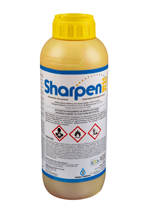 Το SHARPEN είναι εκλεκτικό ζιζανιοκτόνο για την καταπολέμηση πλατύφυλλων και αγρωστωδών ζιζανίων κατά το φύτρωμά τους, σε διάφορες καλλιέργειες. Εφαρμόζεται και ως αντιφυλλιζιακό καπνού. Στο βιοχημικό επίπεδο επηρεάζει την λειτουργία της μίτωσης με παρεμπόδιση του σχηματισμού των μικροσωληνίσκων της μιτωτικής ατράκτου. Δρα δι΄ επαφής και παρεμποδίζει την ανάπτυξη των μασχαλιαίων οφθαλμών-φυλλύζια, που ακολουθεί το κορυφολόγημα των αμερικανικών καπνών Μπέρλεϋ και Βιρτζίνια.