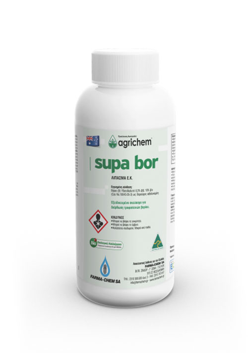Το Supa Bor είναι εξειδικευμένο σκεύασμα για διόρθωση τροφοπενιών βορίου, το οποίο έχει μικροσωματίδια που διασφαλίζουν ομοιόμορφη κατανομή και γρήγορη και αποτελεσματική απορρόφηση από το φυτό.