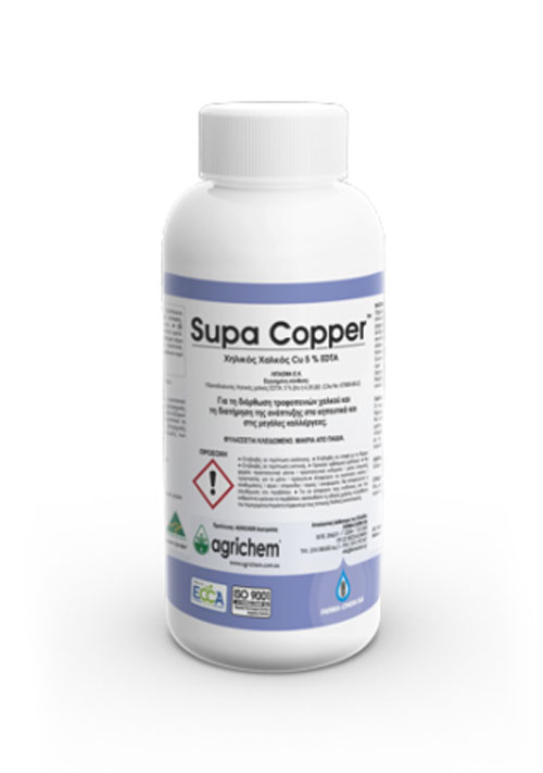 Το Supa Copper είναι ειδικό βιολογικό σκεύασμα χηλικού χαλκού (5%), κατάλληλο για εφαρμογή σε καλλιέργειες κηπευτικών και δένδρων. Διορθώνει τυχόν τροφοπενίες χαλκού και παράλληλα προστατεύει έναντι μυκήτων και βακτηρίων.